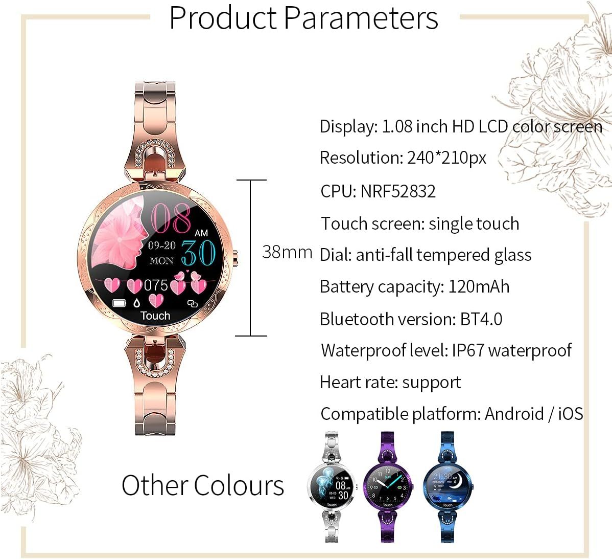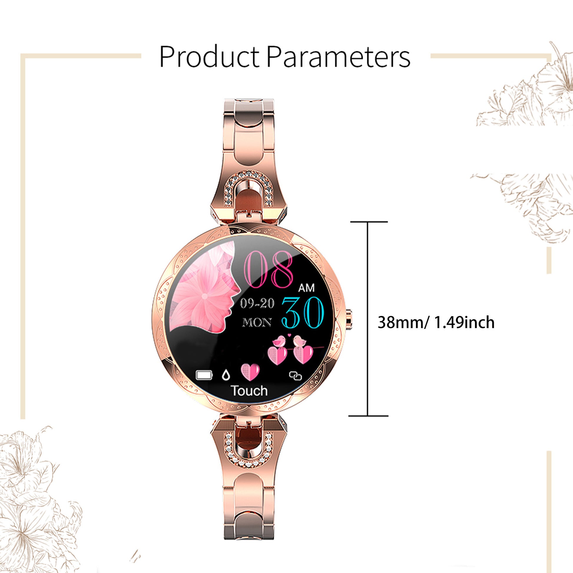 Ladies' Fashion Watch, 1.09-inch Full Touch Screen Watch, With Call Function, Sports Mode, Pedometer