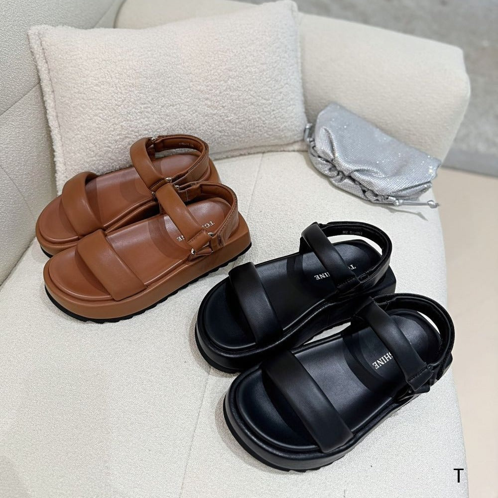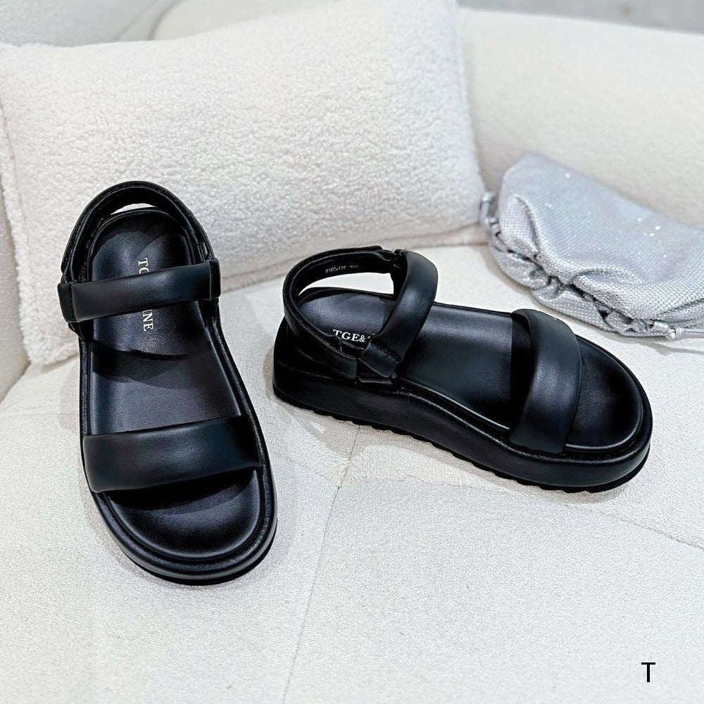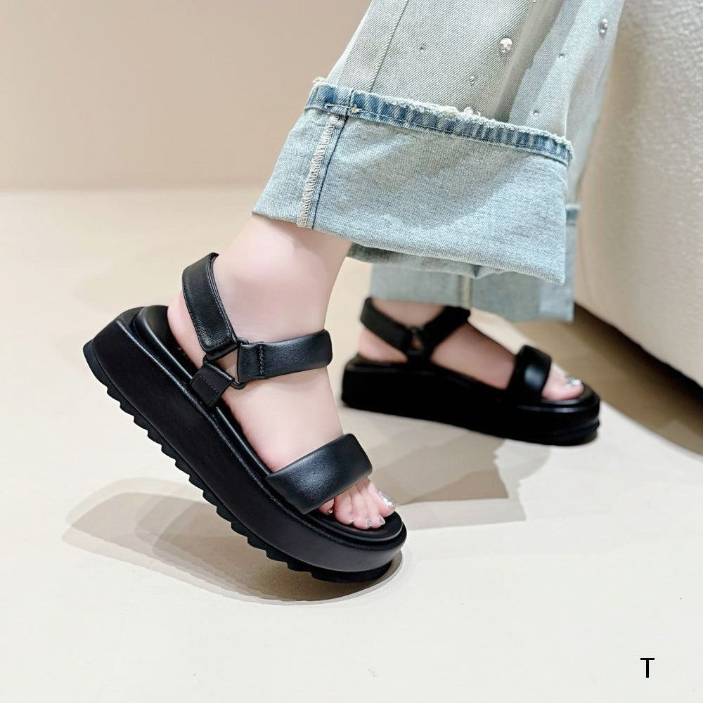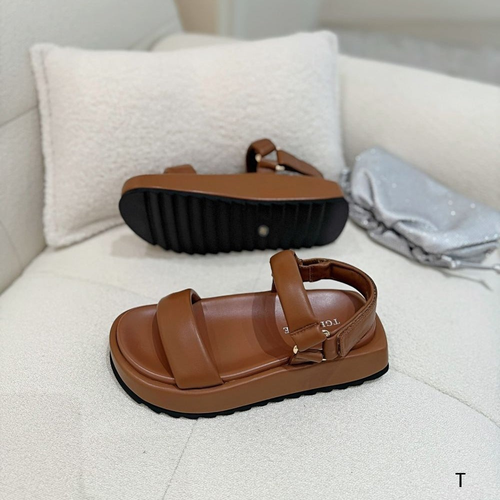Simple Fashion Soft Tire Sheepskin Round Toe Comfortable Strap Light Platform Sandals